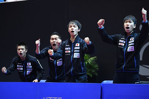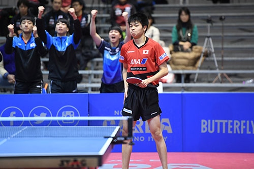 世界ジュニア選手権イタリア大会3日目、2連覇を狙う日本男子は張本を欠くも、木造、髙見、田中、宇田というメンバーで予選と決勝トーナメント準々決勝を突破。そして、準決勝では韓国との死闘の末に3対2で勝利し、決勝進出を決めた。