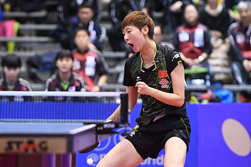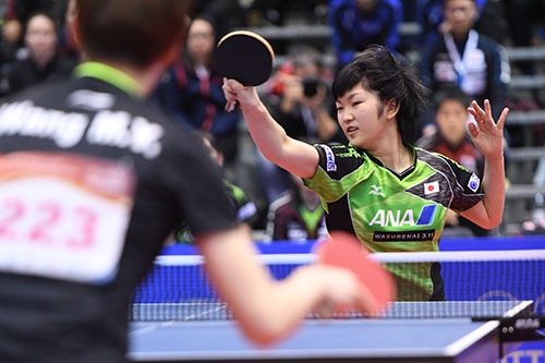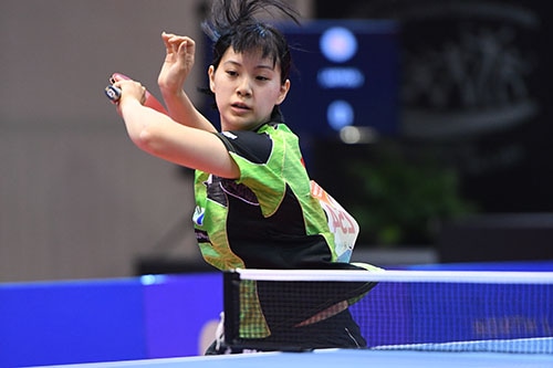 長﨑はパワフルな両ハンドで石洵瑶を破る快挙