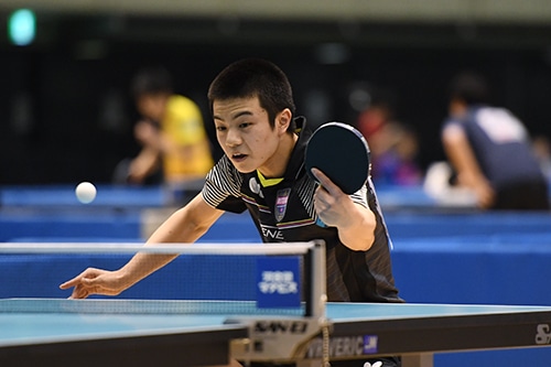 第1シードの宇田幸矢(JOCエリートアカデミー/大原学園)は内田智也(明徳義塾中・高)にストレート勝ち。接戦になる場面も見られたが要所を締めて勝利を収めた。また、優勝候補の一角である戸上隼輔(野田学園高)は中村光人(愛工大名電高)に2ゲームを先取される苦しい展開となったが、逆転勝ち。序盤は中村のバック面の表ラバーにタイミングが合わなかったが、ループドライブを中心にしたプレーで流れを取り戻した戸上。劣勢をはねのけて初戦を切り抜けた。