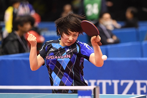 このほか、日本式ペンホルダーを使う新井和夏葉(横浜隼人中)、出雲美空(遊学館高)らがベスト16入りを決めた。ジュニア女子はこのあと、16時30分から5回戦が行われる予定だ。