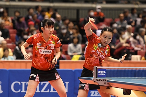 抜群の連係を見せる早田(左)/伊藤は初優勝なるか