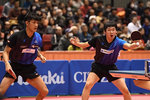 上田/吉田は前回2位の藤村/吉村と対戦。上田/吉田はゲームカウント2対1で迎えた第4ゲームでマッチポイントを握ったが決め切ることができず最終ゲームへと突入。それでも、最終ゲームの終盤で台上のボールを先に攻めるプレーを見せた上田/吉田が11-8でゲームを奪って勝利を収めた。