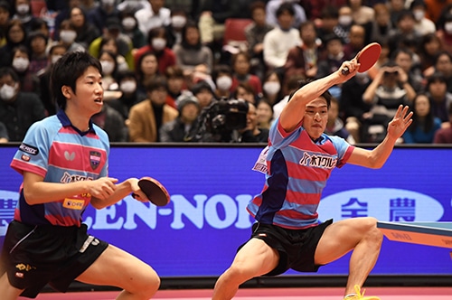 水谷/大島は準々決勝で昨年チャンピオンの丹羽/酒井(スヴェンソン/明治大)、準決勝で宇田/張本(JOCエリートアカデミー・大原学園/JOCエリートアカデミー)と、強敵を連破して勝ち上がった。決勝で対したのは上田/吉田。社会人チャンピオンを相手にどんな戦いを見せるのか注目が集まった。