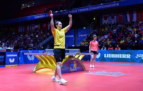 女子団体グループリーグ、中国はシンガポールと対戦。中国が勝利するも、若手の王曼昱がベテランの馮天薇に敗れ、小さなほころびを見せた。