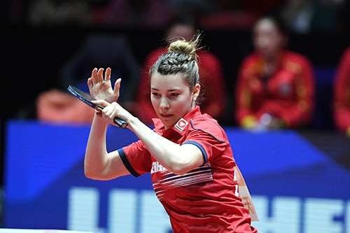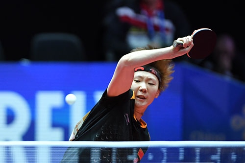 1番は劉詩雯対ポルカノバ。昨夜ドイツから2点取りしたポルカノバだが、今日は相手が悪かった。劉詩雯には強みの逆横回転サービスが効かず、長いリーチでも届かない場所に強打を打たれ、ストレートで敗れた。
