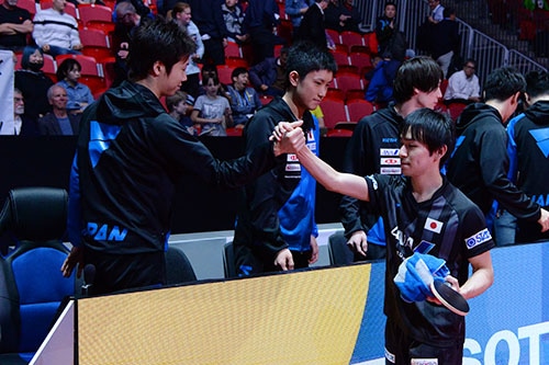 「快勝でしたね。張本が1番で黄鎮廷に勝ったことは、相手のチームにとっても大きな打撃になったと思いますし、トップバッターでいい仕事をしてくれたと思います。張本の調子はかなり上がってきていますね。今の試合は素晴らしく課題でもあるフォアハンドがよかった。バックハンドは相手の裏面バックハンドに球質が合わない部分があってそこで少しミスは出てしまったんですが、その分をカバーするくらいフォアハンドがよかったですね。