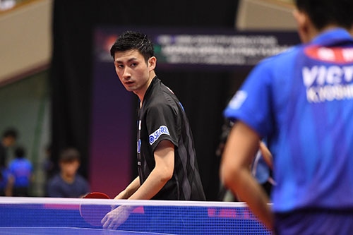 上田仁対吉村和弘の同士討ちは、ゲームオールにもつれる接戦になった。安定感で上田、打球の切れ味で吉村の構図で試合が進んだが、最後まで集中力を切らせず、吉村得意のチキータを封じるサービスのコース取りを工夫し続けた上田が吉村を振り切った。