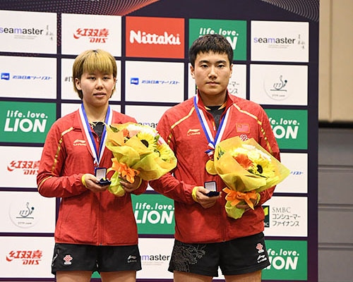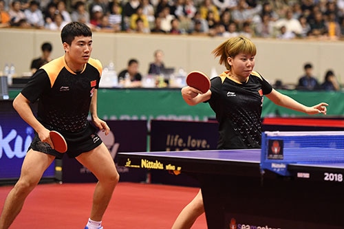 混合ダブルス決勝が行われ、梁靖崑/陳幸同(中国)が、吉村/石川(日本)をストレートで下して、優勝を飾った。吉村/石川は3ゲームとも9本まで迫ったが要所であと1本が奪えなかった。