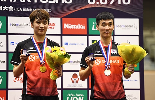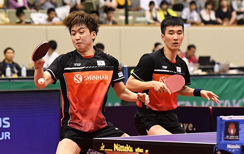 男子ダブルス決勝は、李尚洙/鄭榮植(韓国)対梁靖崑/周愷(中国)の組み合わせになった。韓国ペアの攻めの速さ対中国ペアのパワーとの勝負になったが、速い打点でたたみかけるように連係して攻め立てた韓国ペアに軍配。第3ゲームの競り合いを制したのが大きかった。
