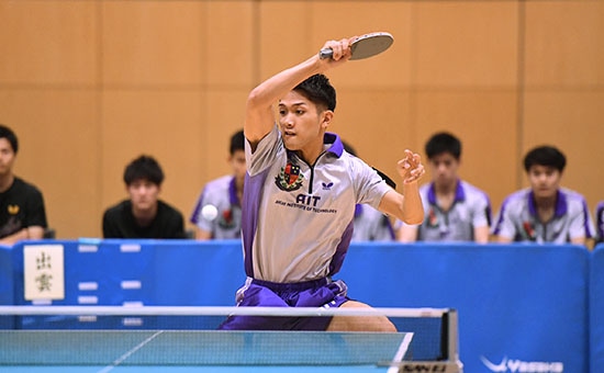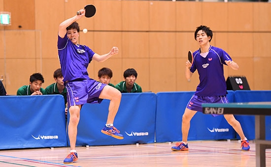 決勝進出の立役者となった龍崎だが、田添のどこからでも一発で決めることができる鋭い両ハンドに苦しみ、0対2に。追い詰められた龍崎は粘りのプレーで田添に追いつくが、監督が「心が成長した」と語るように、ぶれないプレーを貫いた田添が最終ゲームをものにして専修大が先制点。