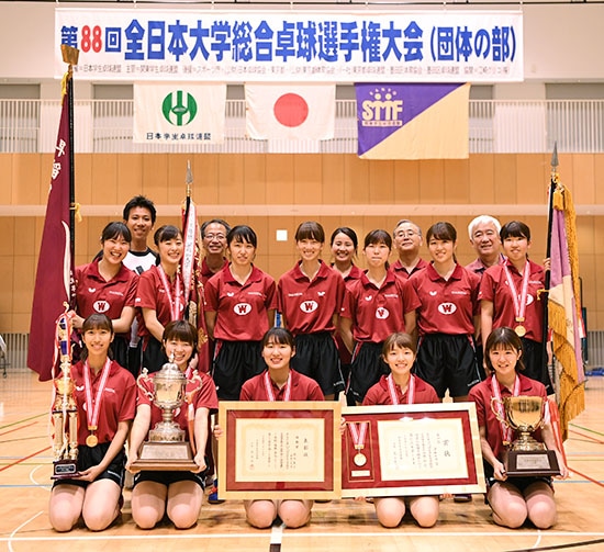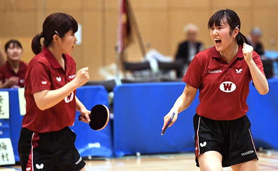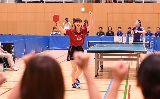 早稲田大学としてWAP(Waseda Athlete Program)というのがあって、これは4年間で卒業しなくてはならないなどのルールなどが決められています。そういう授業最優先の厳しい環境の中で、それぞれが時間をつくって、練習相手を探したりしながら、また、男子部員に相手をしてもらったりしながらやってこれたのもよかったのかと思います。
