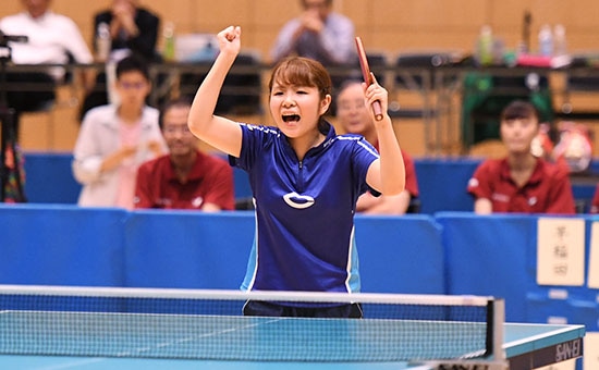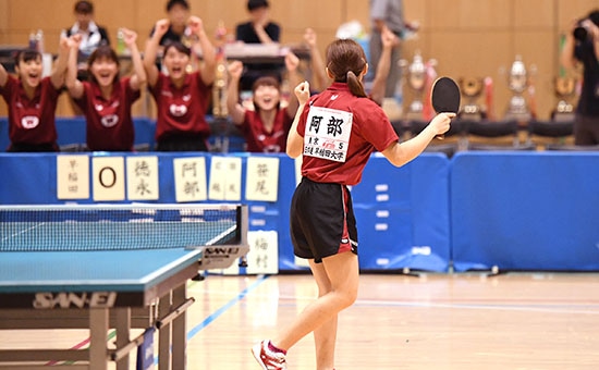 徳永のまとめたチームだったのでトップで徳永に出てもらって、森田さんには分が悪かったので、残念でしたけど、全員で勝とうと言ってきたので、トップをしっかりと試合をしてくれたことで後に続いたかなと思います。阿部も、1年ダブルスも頑張って、笹尾はちょっと最後で挽回されましたが、鎌田もラストで頑張ってくれました。厳しい場面で回ってきましたが、いつも通りの卓球をやってくれたのでよかったです。