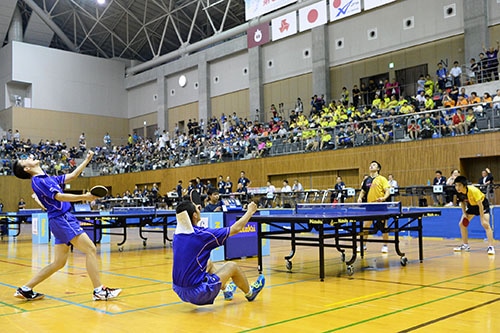 そのほか、田村/山下(杜若)が、外シードの岩永/遠藤(帝京安積)にゲームカウント0対2から逆転勝利し、ベスト16進出。地元の愛知勢の活躍に、会場は大いに盛り上がった。