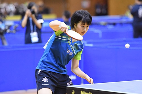 1年生の相馬は、青木をストレートで下し、ベスト4へ。予想の上を行く相馬のツッツキとカットの変化に対し、青木は自分のプレーのリズムを完全に狂わされてしまった。