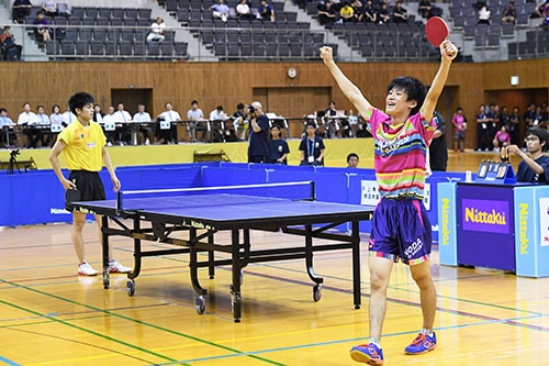 男子シングルス決勝が行われ、戸上(野田学園)が田中(愛工大名電)を3対1で下し、初優勝を遂げた。