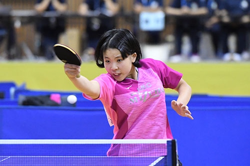 試合が始まると、野村の表ソフトでのバックハンドが火を噴く。塩見がつないできたボールはもちろん、厳しめに攻めてきたボールに対しても、直線的な弾道のバックハンドを広角に打ち込んでいく。塩見のフォア側への下回転を強くかけたロングサービスもよく効き、野村が第1ゲームをジュースで奪うと、第2ゲームからはさらに手がつけられない状態になった。