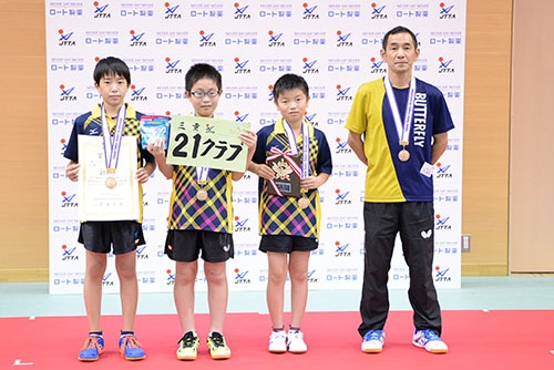 3位には、第1シードの田阪卓研(京都)に勝ったアシュラ(愛知)を準々決勝で接戦の末に下した21クラブ(三重)と、カット主戦型の廣田の活躍が目を引く岸田クラブ(神奈川)が入った。