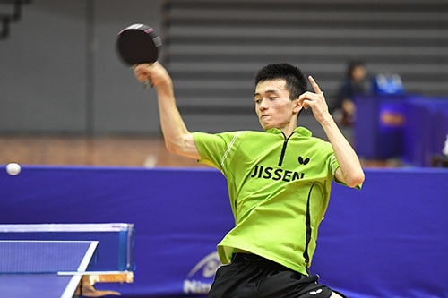 トップで髙橋拓希が剣持の連続ドライブに屈するも、エースの田原が2番で勝利し、1対1で折り返す。