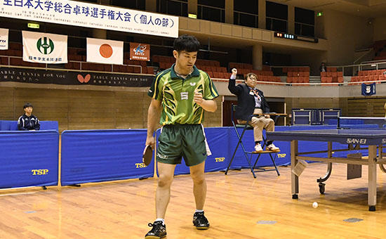 三部は安定感のある両ハンドドライブで酒井明日翔(明治)を破ってベスト4入り。準決勝では同級生でライバルの及川と対戦したが、決定力で勝った及川にストレートで敗れた。