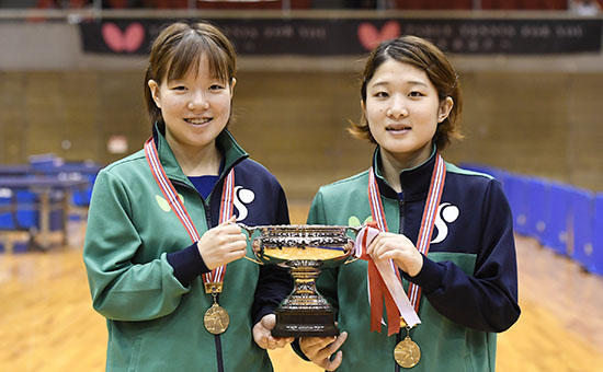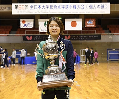 決勝は激しいラリー戦となったが、安藤が3対1とリードしたところから、森田が高い集中力で安藤の揺さぶりに対応。甘いボールを見逃さずに強打で攻めて2ゲームを連取。流れは森田に傾いたかに見えた。最終ゲームも森田がリードする展開で進んだが、安藤が学生女王の意地を見せて前陣両ハンドで攻めきり、2連覇の栄冠をつかんだ。