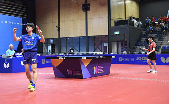 世界ジュニア選手権オーストラリア大会3日目は、男女団体の準決勝が行われた。男子は日本対中華台北、中国対フランスの2試合が行われ、日本と中国が決勝進出を決めた。