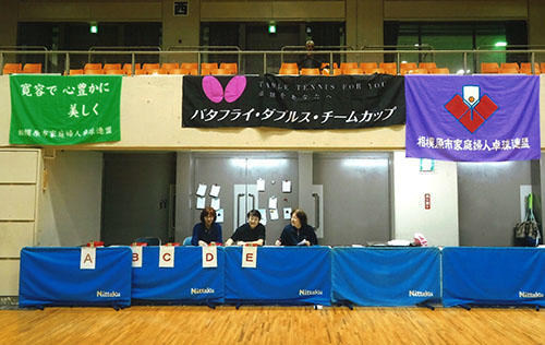 株式会社タマスでは、卓球のおもしろさを多くの人に味わっていただくために「バタフライ・ダブルス・チームカップ」を企画しています。「バタフライ・ダブルス・チームカップ」は、各地の卓球連盟・協会様が主催し、株式会社タマスがご協力する形で開催される大会で、1チーム4人以上の3ダブルスの団体戦で行われます。