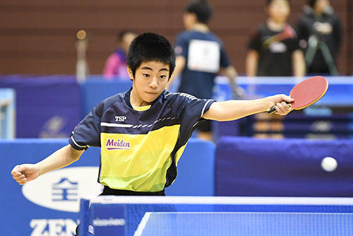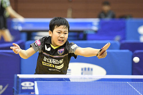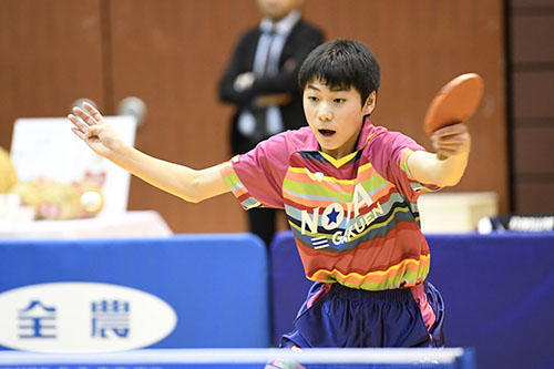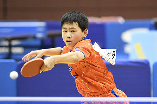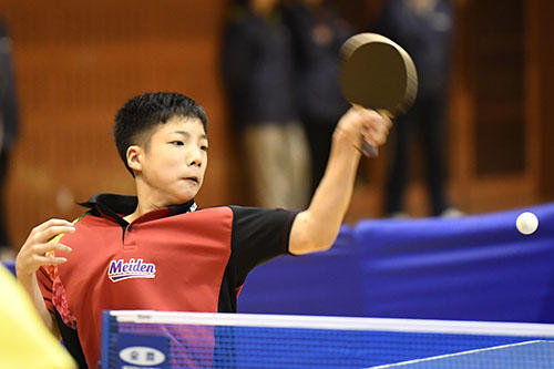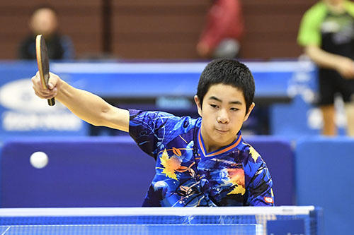 2位にはサウスポーの芝拓人(野田学園中)が入った。決勝の松島戦は高速のバックハンド戦になり、先にストレートを突く戦術で見せ場をつくったが、最後は松島の精度の高いバックハンドと気迫に振り切られた。