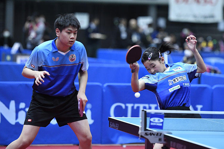 上位進出が期待される張本/長﨑(JOCエリートアカデミー/JOCエリートアカデミー・大原学園)も「東京オリンピックでは混合ダブルスも含めて全種目出場を目指す」という張本が気合い十分のチキータで長﨑を引っ張り、快勝で3回戦に駒を進めた。