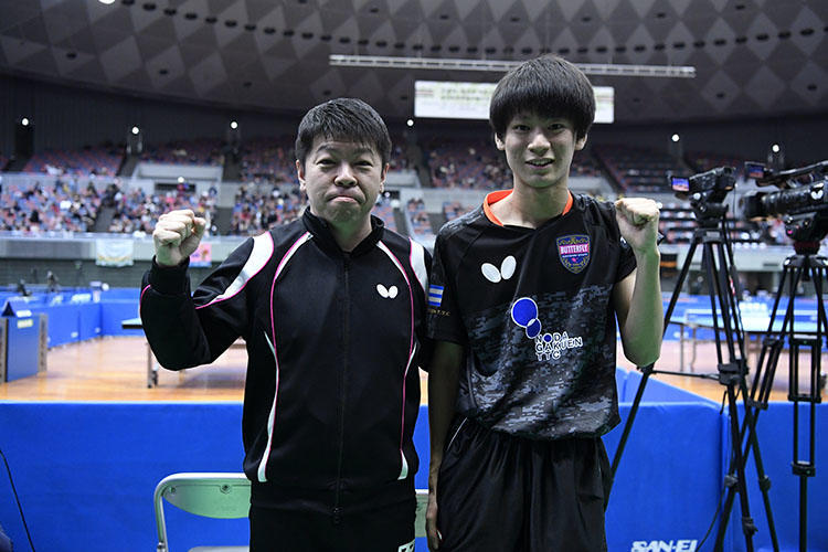 これまで宇田の球威に押されて台から下げられていた戸上は、ひるまずに前に位置取りすることから勝機を見い出しにかかった。この、降り注ぐ矢をかいくぐるような戸上の勇気が宇田のスイングを微妙に狂わせ、第3ゲームを逆転で物にすると、第4ゲームも連取。最終の第5ゲームは宇田のボールが完全に入らなくなり、一方の戸上はチキータや切れ味鋭いドライブが決まり、大逆転で優勝を手にした。