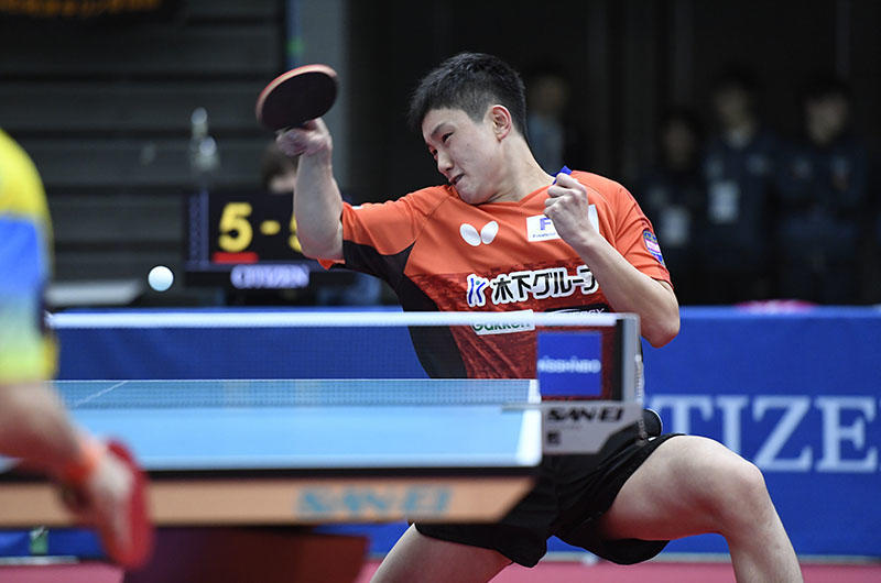 田添健汰(木下グループ)はパワフルなフォアハンド連打で吉田海偉(東京アート)を撃破