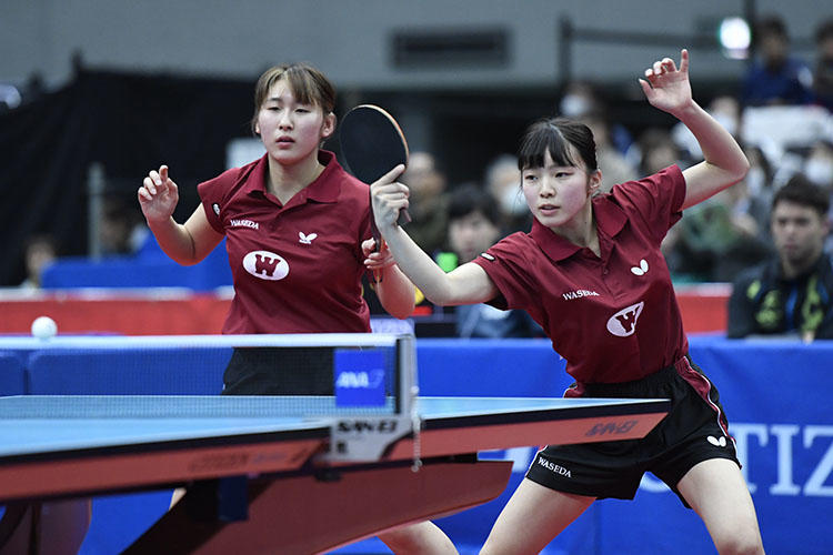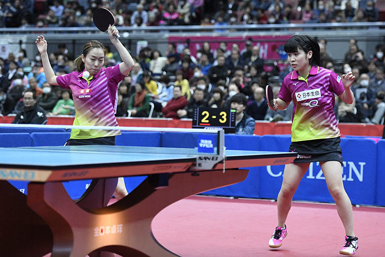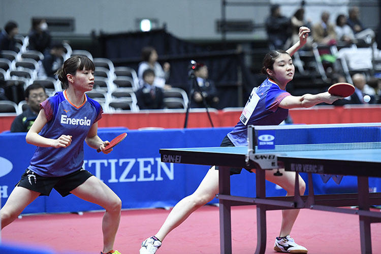 優勝候補最有力の早田/伊藤は、個々の能力の高さ、連係の良さ、決定力の高さで群を抜いている。準々決勝でも、中国電力ペアをストレートで退け、危なげなくベスト4入り。着実に2連覇に向けて駒を進めている。