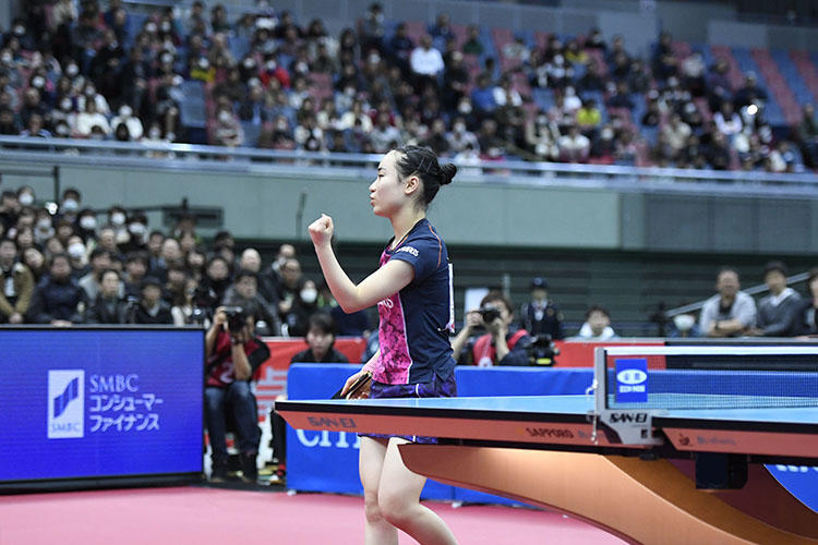 伊藤美誠(スターツSC) 13、−11、5、7、6 安藤みなみ(専修大)