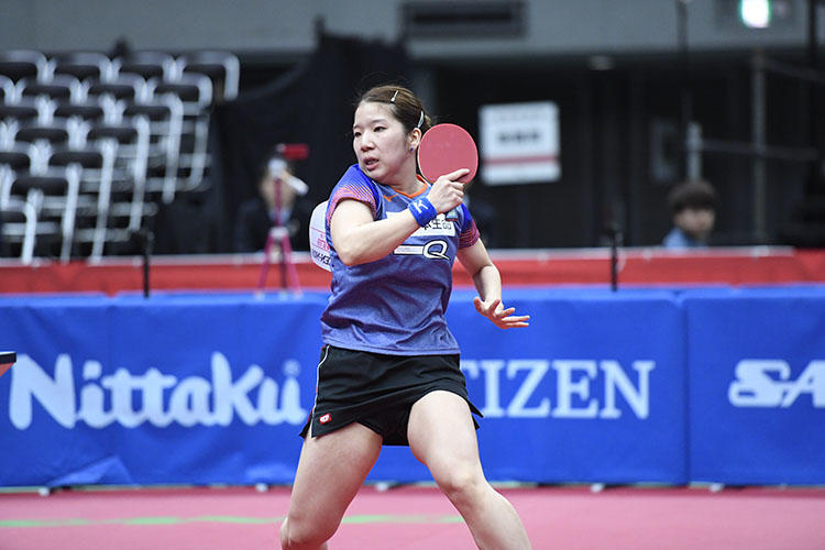 男子のように横に振り抜くバックハンドドライブから機を見て回り込むフォアハンドドライブで加藤の鉄壁を打ち破り、地元・大阪で表彰台を決めた。