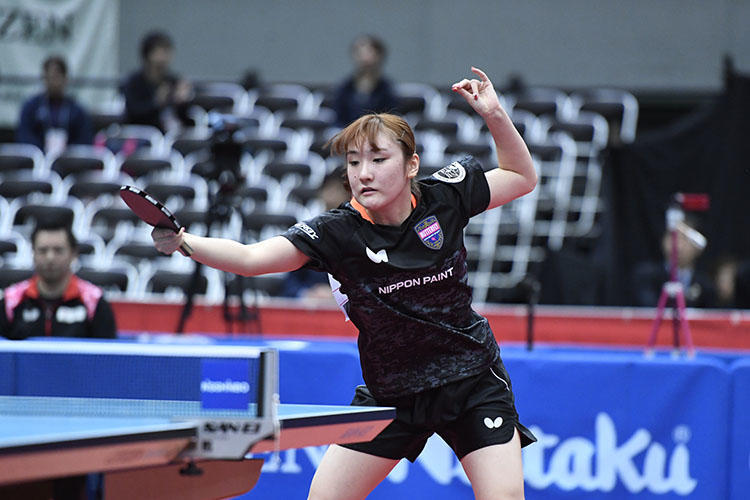 「加藤選手とはかなり試合をしていて、最近は二回連続で負けていたので思い切って行こうと思っていました。今日は作戦が上手くはまりました。1試合だけだということが事前に分かっていましたので、疲れても思い切り足を使ってフォアで攻めていこうと思っていました。加藤選手には何回も逆転負けを喫しているので、最後まで自分のペースだとは思いませんでした。Tリーグで経験させてもらい、競って当たり前という気持ちで試合に挑むことができている。競っても自分のペースで試合ができるようになってきているので、そこが成長していると思います」と森。明日も気合いの回り込みが炸裂するか。要注目だ。