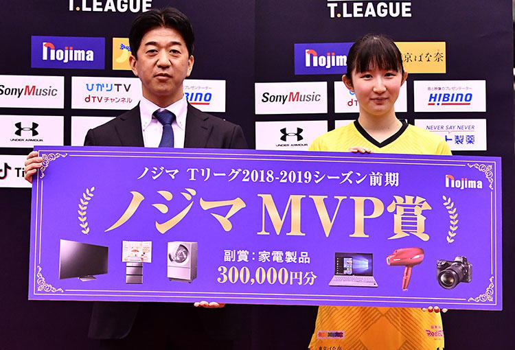 前期MVPの早田ひな。1月も勝利 ©T.LEAGUE
