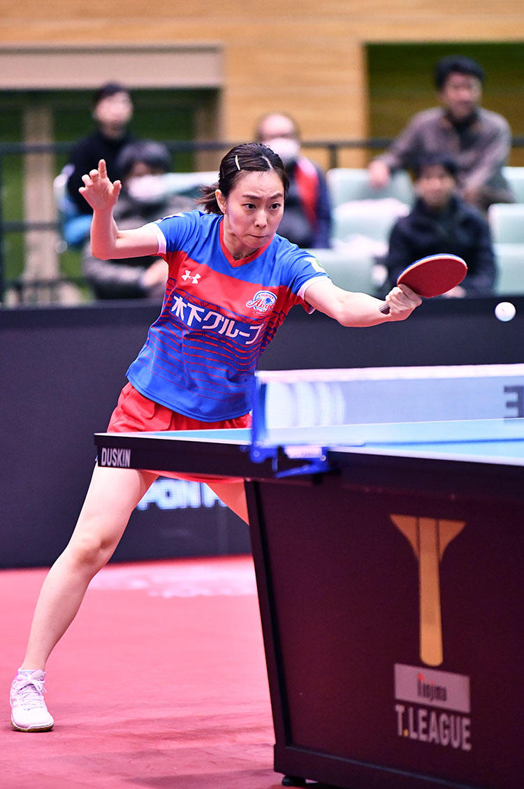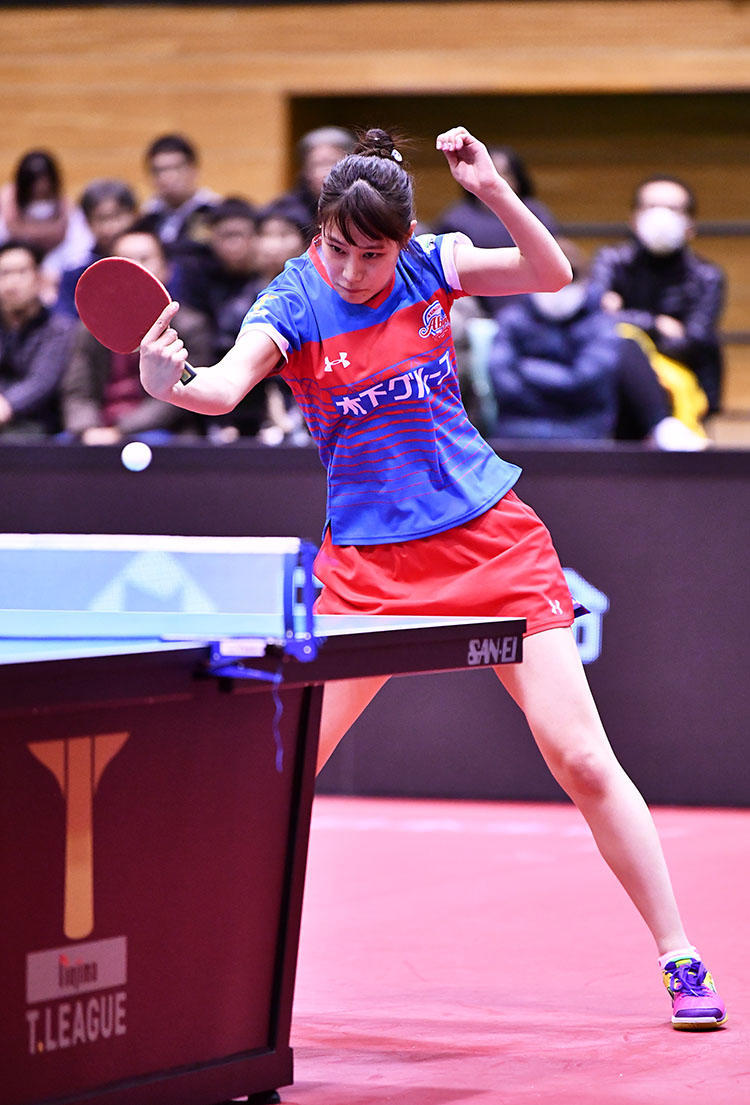 木下アビエル神奈川の浜本由惟。16日の試合で4番をきっちり締めた ©T.LEAGUE