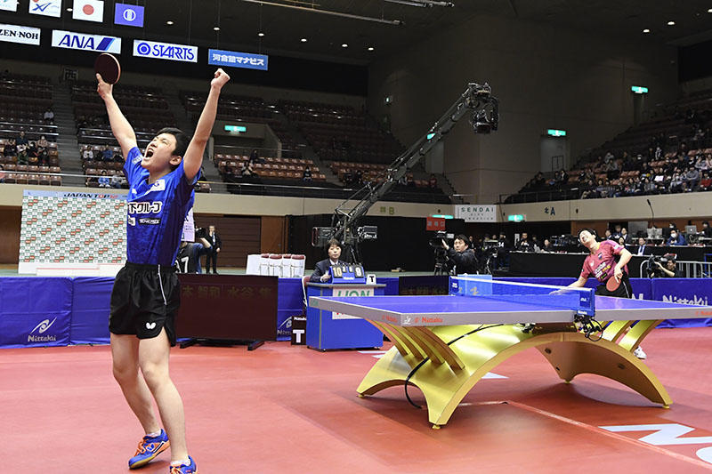 「去年(ジャパントップ12の決勝で水谷に)負けて悔しかったですし、全日本でも3位で悔しかったので、その2つの試合(の借り)を倍で返せたかなと思います。