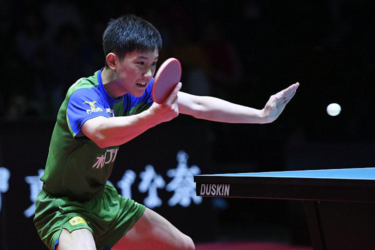 侯英超はバック面に表ソフトラバーを貼るカット主戦型で、粘るというより、強烈な変化で相手にプレッシャーをかけるタイプだ。慣れるまでが大変なカット主戦型で、この試合も侯英超ペースで進む。侯英超は変化サービスからの変化の激しいバックカットとフォアハンドは多彩なロングで吉村に的を絞らせない。吉村も侯英超のフォアハンドのロングを狙い打って食い下がったが、最後は侯英超がサービスエースを連発して吉村をゲームカウント3対1で振り切り、木下マイスター東京が1対1のタイに戻した。