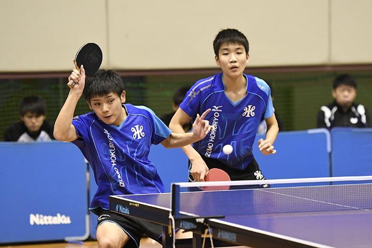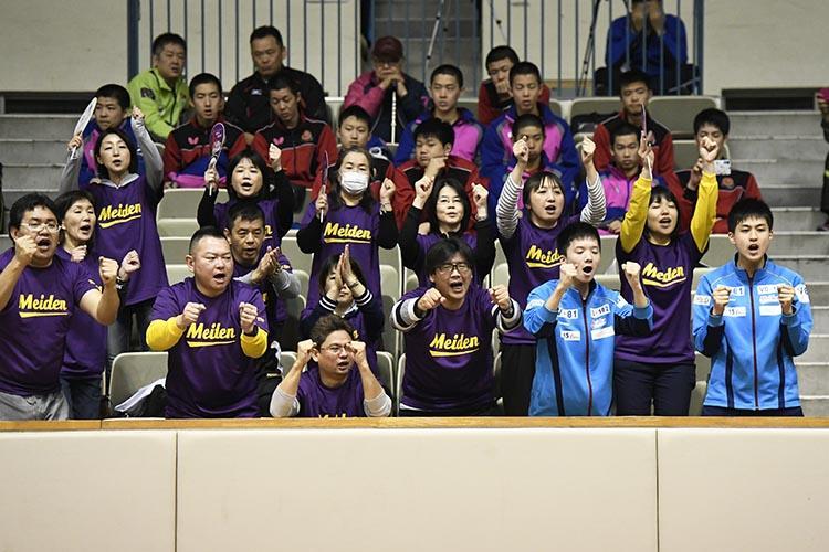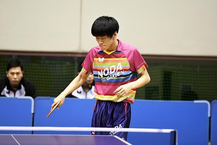 試合はトップの曽根対戸上のエース対決からいきなりクライマックスへ。曽根は、インターハイ王者の戸上に真っ向勝負を敢行。チキータからの強烈なバックハンドドライブや、戸上必殺の回り込みバックストレートをカウンターで抜き返すなど、曽根は戸上の株を奪うようなアグレッシブなプレーを展開し、ゲームオール9本で勝利。試合の流れを決定付ける先制点をたたき出した。
