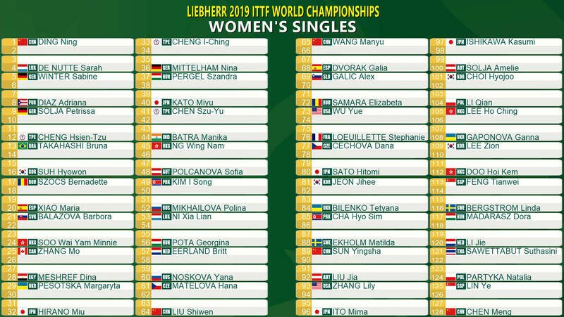 第1シードは丁寧、第2シードは陳夢、第3シードは王曼昱、第4シードは劉詩雯と、4シードは中国勢が独占。
