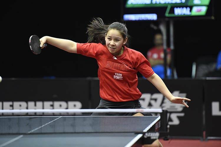 今大会最年少の14歳・ハーシー(ウェールズ)はシャスラン(フランス)の強打に破れ、予選突破ならず。決勝トーナメント進出はならなかったが、前陣での軽快な両ハンドドライブは将来性十分で、今後、卓球では聞き馴染みのないウェールズという国の名前をしばしば聞くことになりそうだ。