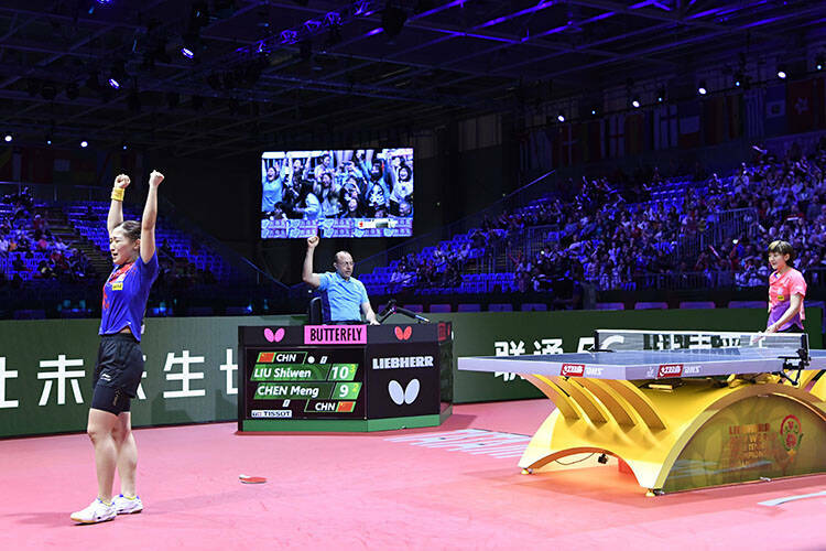 両者譲らず、ゲームカウント2対2で迎えた第5ゲーム、劉詩雯が安定性の高い両ハンドで陳夢のミスを誘い、ラブゲームで奪うと、第6ゲームは序盤から劉詩雯がラケットを強気で振ってリードを奪う。決勝まで勝ち上がり、簡単には引き下がれない陳夢も開き直って強烈なボールを打ち込んで追いすがるが、最後は劉詩雯がラリーで打ち勝って9本で勝利し、歓喜の涙を流した。
