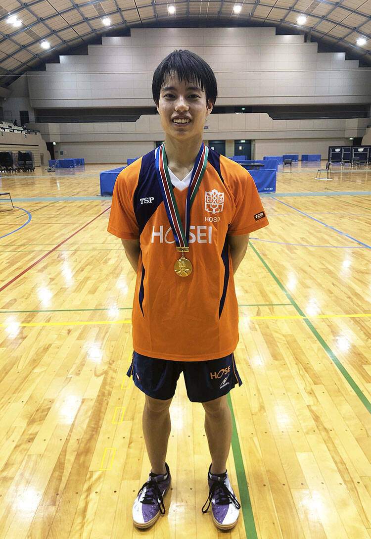 男子シングルス優勝の手塚元彌(法政大学)