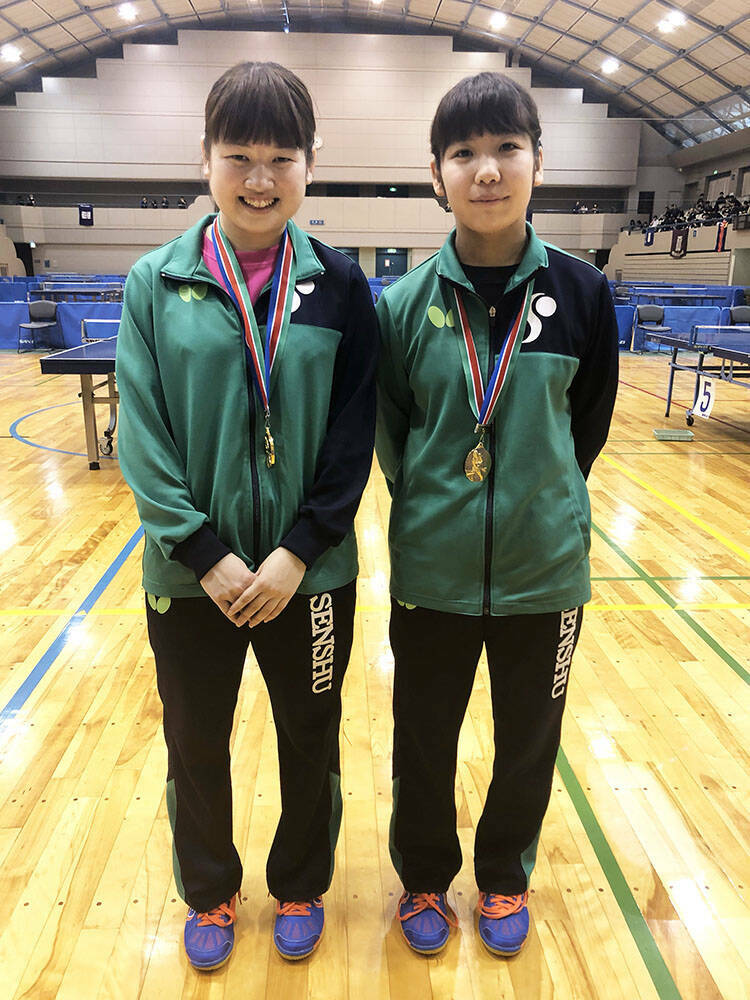 女子ダブルス優勝の大島奈々(左)・永道麻依加(専修大学)