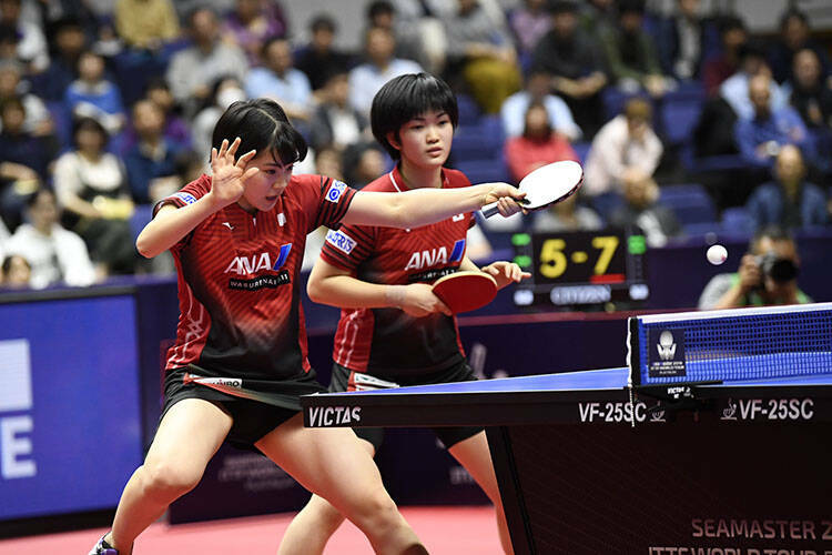 もう一方の準決勝は、陳夢/劉詩雯(中国)が世界卓球2019ブダペスト女子シングルス1位、2位の力を見せて順当勝ち。敗れた陳思羽/鄭先知も中国ペアの猛攻をカウンターして見せ場をつくったが、力及ばなかった。
