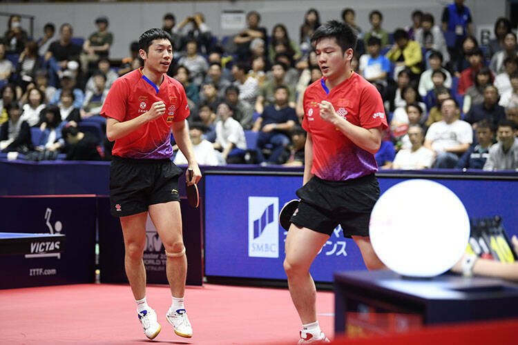 接戦が予想されたもう一方の準決勝、樊振東/許昕(中国)対梁靖崑/林高遠(中国)は、意外にもストレートで樊振東/許昕が勝利。樊振東の厳しい両ハンドと許昕のうなるフォアハンドでラリー戦をことごとく制し、梁靖崑/林高遠を寄せ付けなかった。
