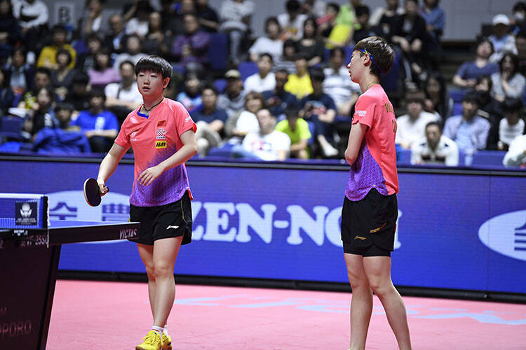世界王者の孫穎莎(左)/王曼昱は先輩ペアの攻撃に遅れを取った
