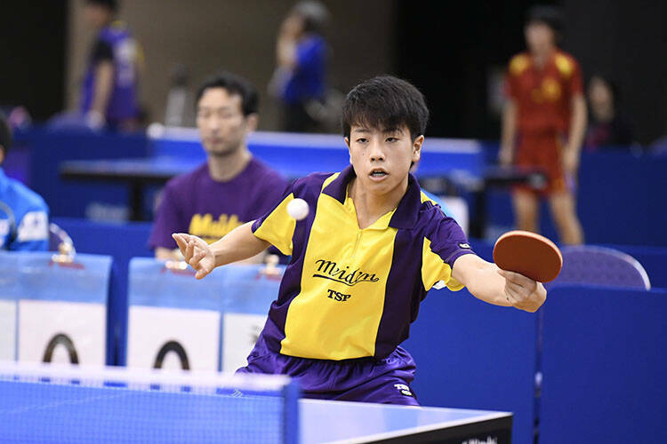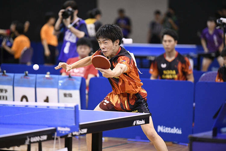 2台進行で行われた前半は、2番の曽根が圧巻のカット打ちでカット主戦型の菊池をストレートで下し、先制。
