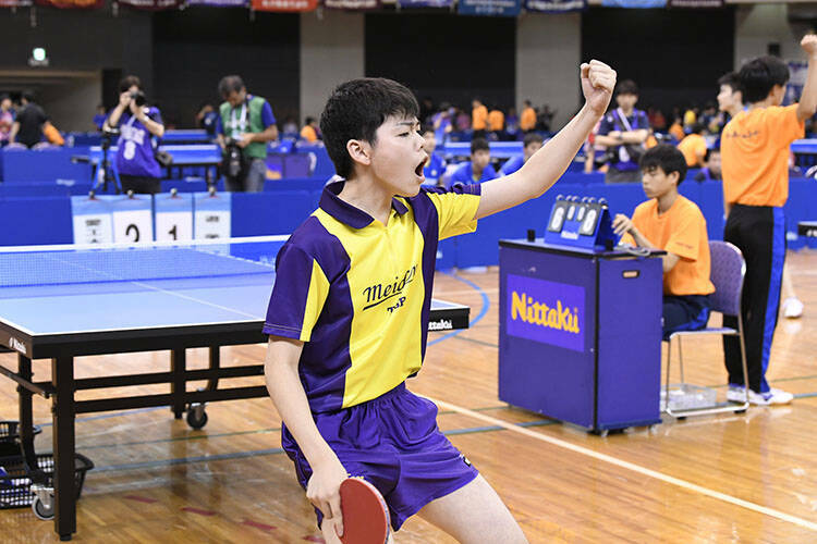 流れが鶴岡東に傾きかけたが、3番ダブルスで戸上/宮川が会心のプレーで原井/佐藤を下し、再びペースを野田学園に戻す。