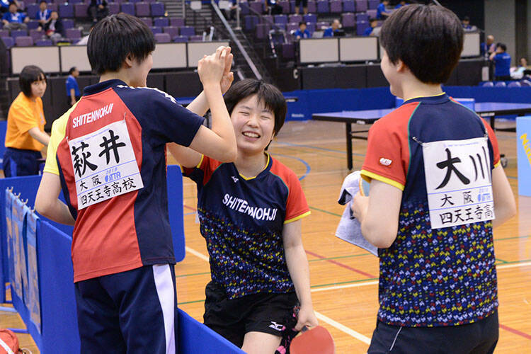 団体戦の3回戦(大成女子戦。マッチポイントを握られて逆転勝利を収めた)の後からは、自信というか勝てる感覚がつかめたので、今日のダブルスのときもラリー戦では自信があったので、どんどん振っていきました」